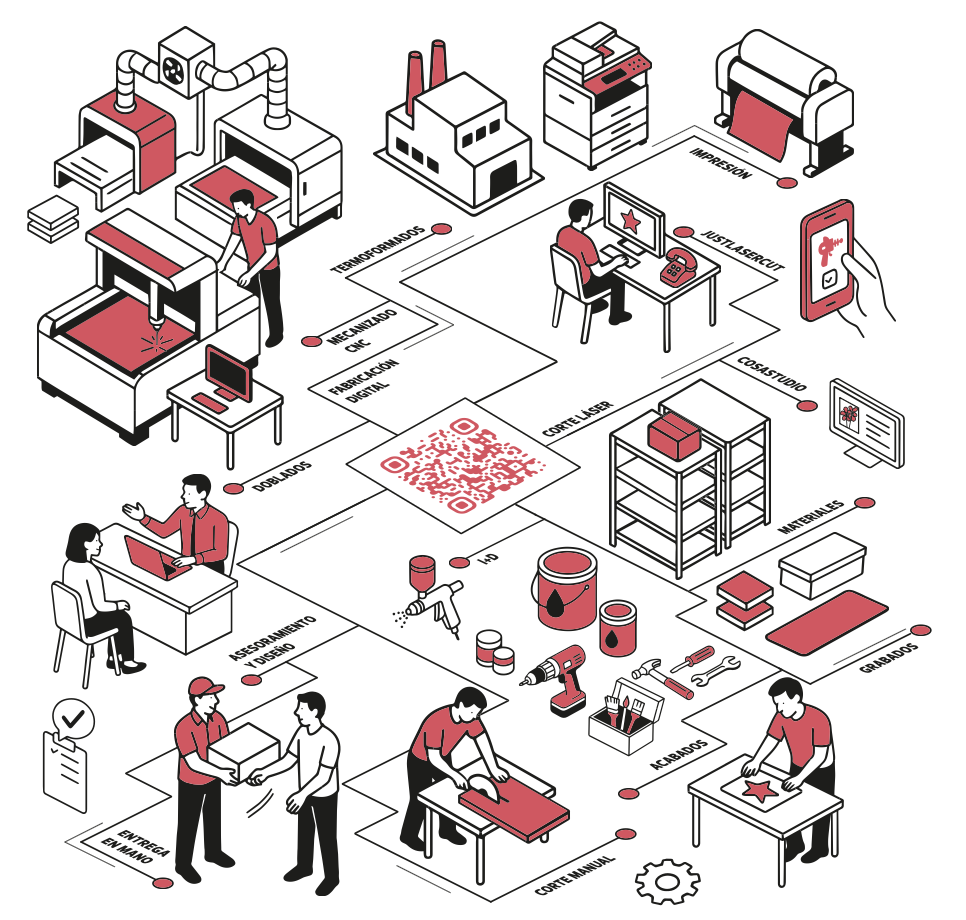 Ponemos a tu disposición todas las máquinas que hemos usado durante años en nuestro propio estudio: desde equipos CNC y láser,